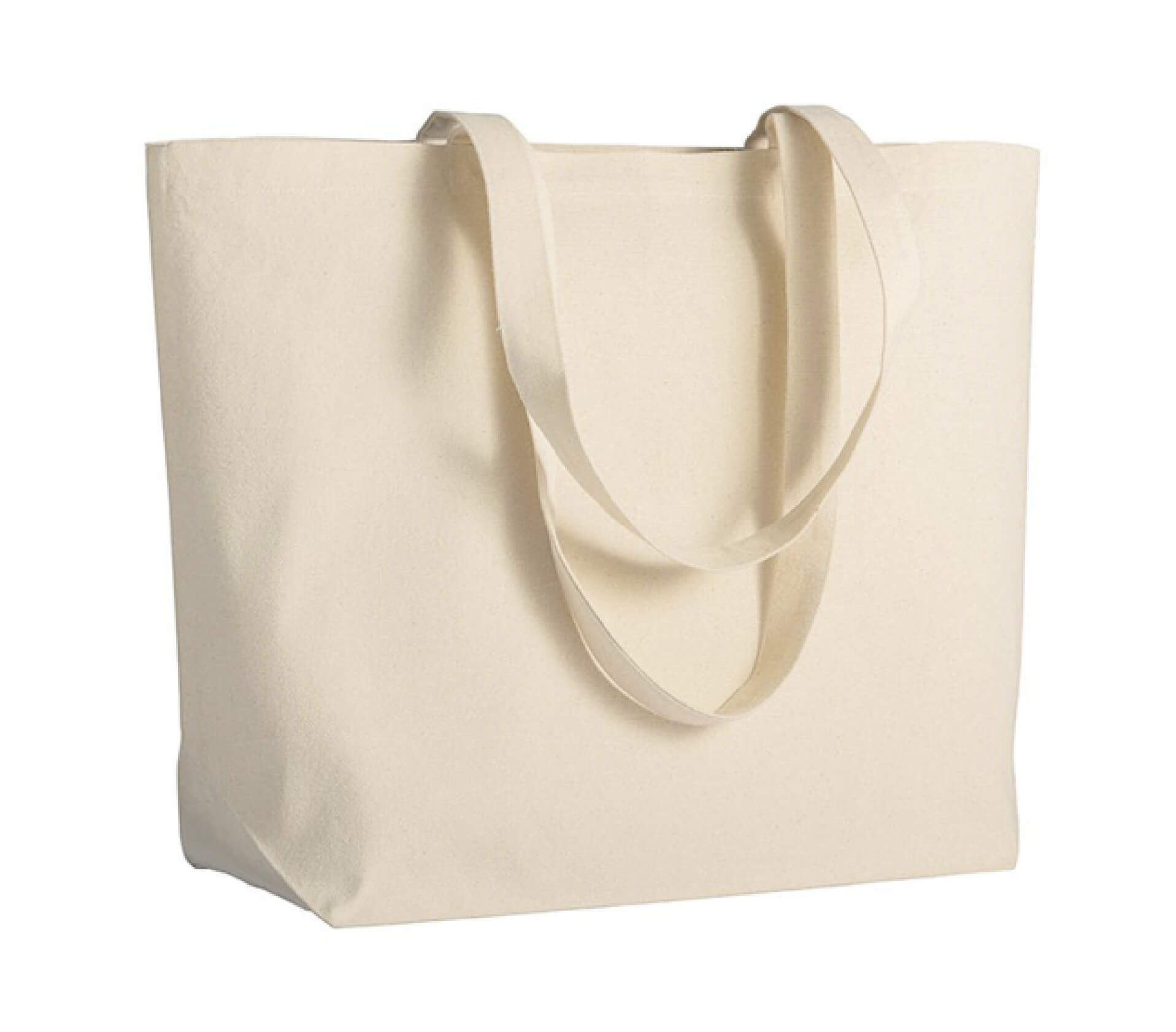 Shopper con soffietto alla base in cotone 280 g/m², manici lunghi, resistenza unita a misure ampie e comode per svariati utilizzi.