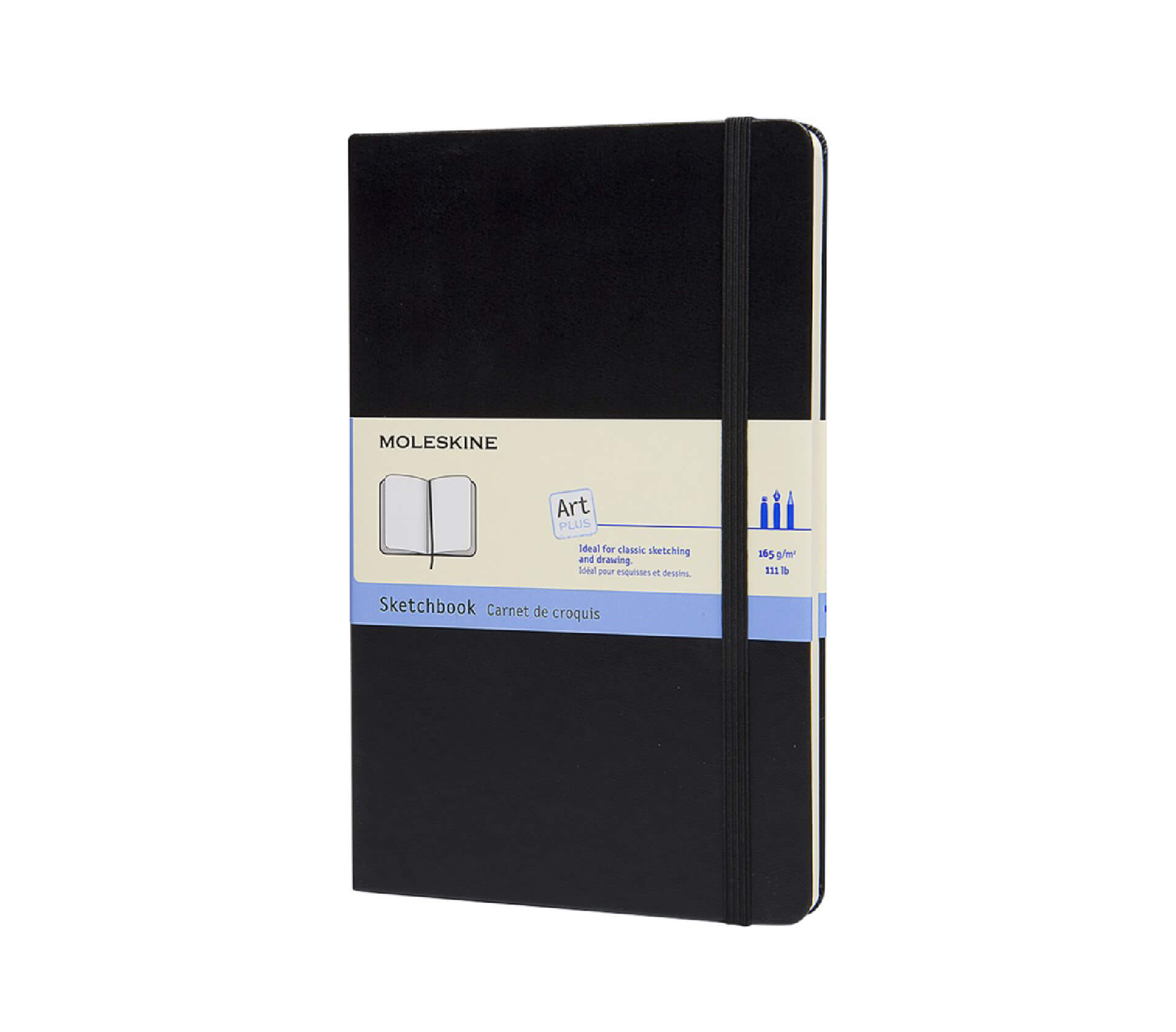 Il quaderno per schizzi Moleskine grande ha copertina rigida, angoli arrotondati, carta priva di acidi certificata FSC, segnalibro, elastico e tasca interna. Ideale per disegni e appunti.