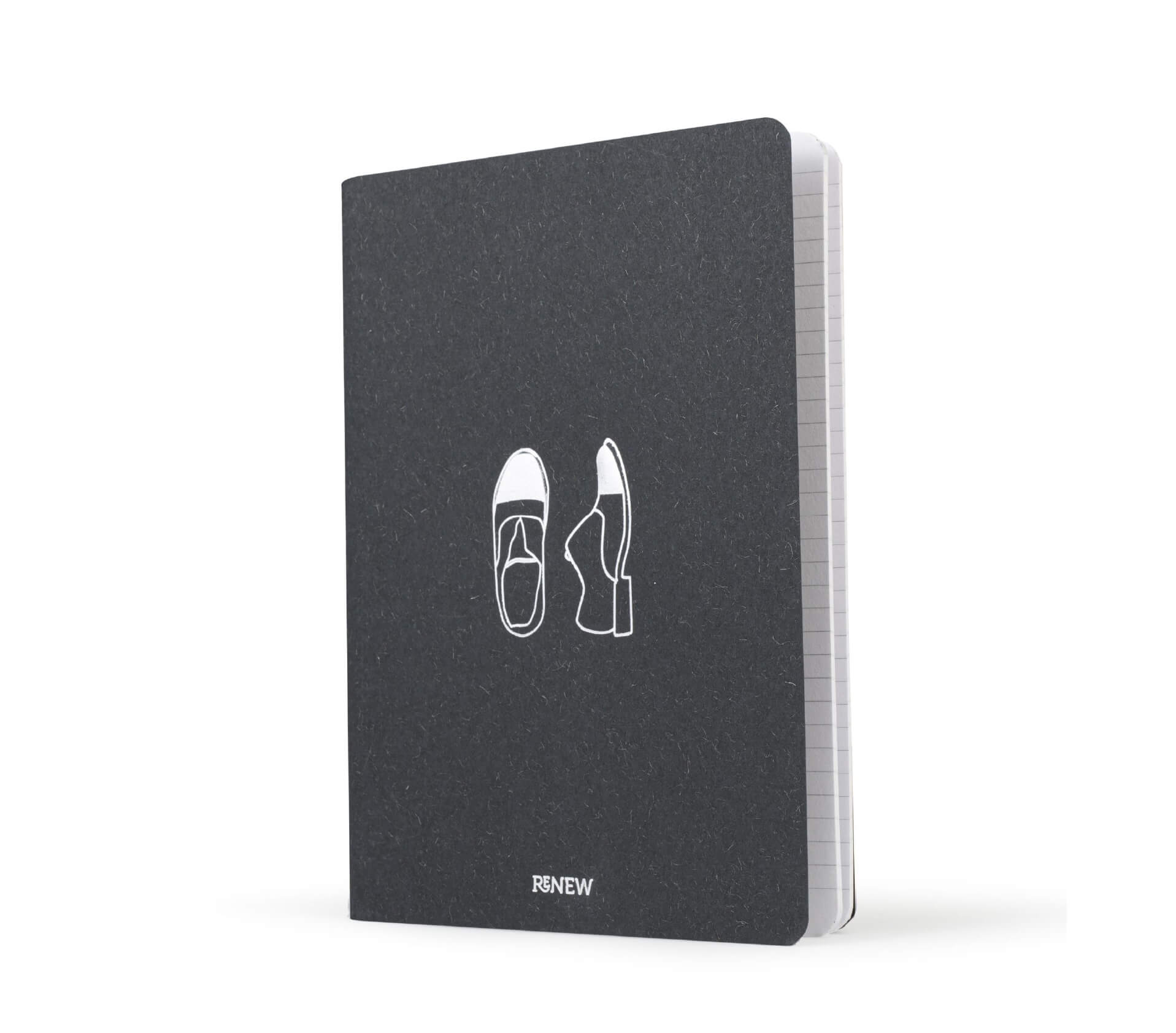 La linea Renew unisce design e sostenibilità: copertine in materiali riciclati da scarti di lana, cotone e cuoio, carte certificate FSC e produzione con 100% energia verde. Disponibile nelle versioni Cotton & Wool e Leather.