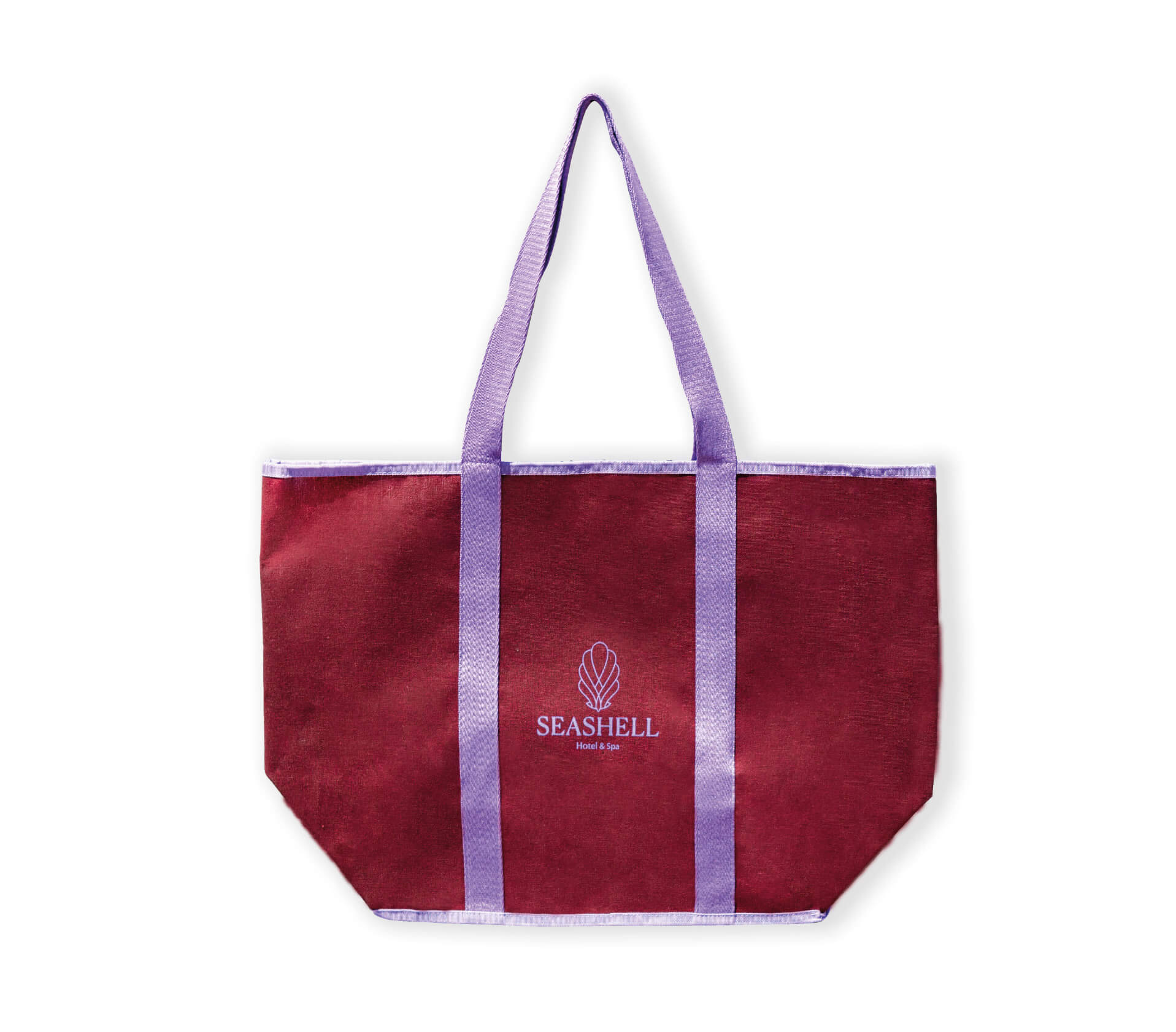 Borsa ampia ed elegante in cotone con rivestimento impermeabile interno e manici in webbing. Perfetta per Hotel, Piscine, Spa e Resort.