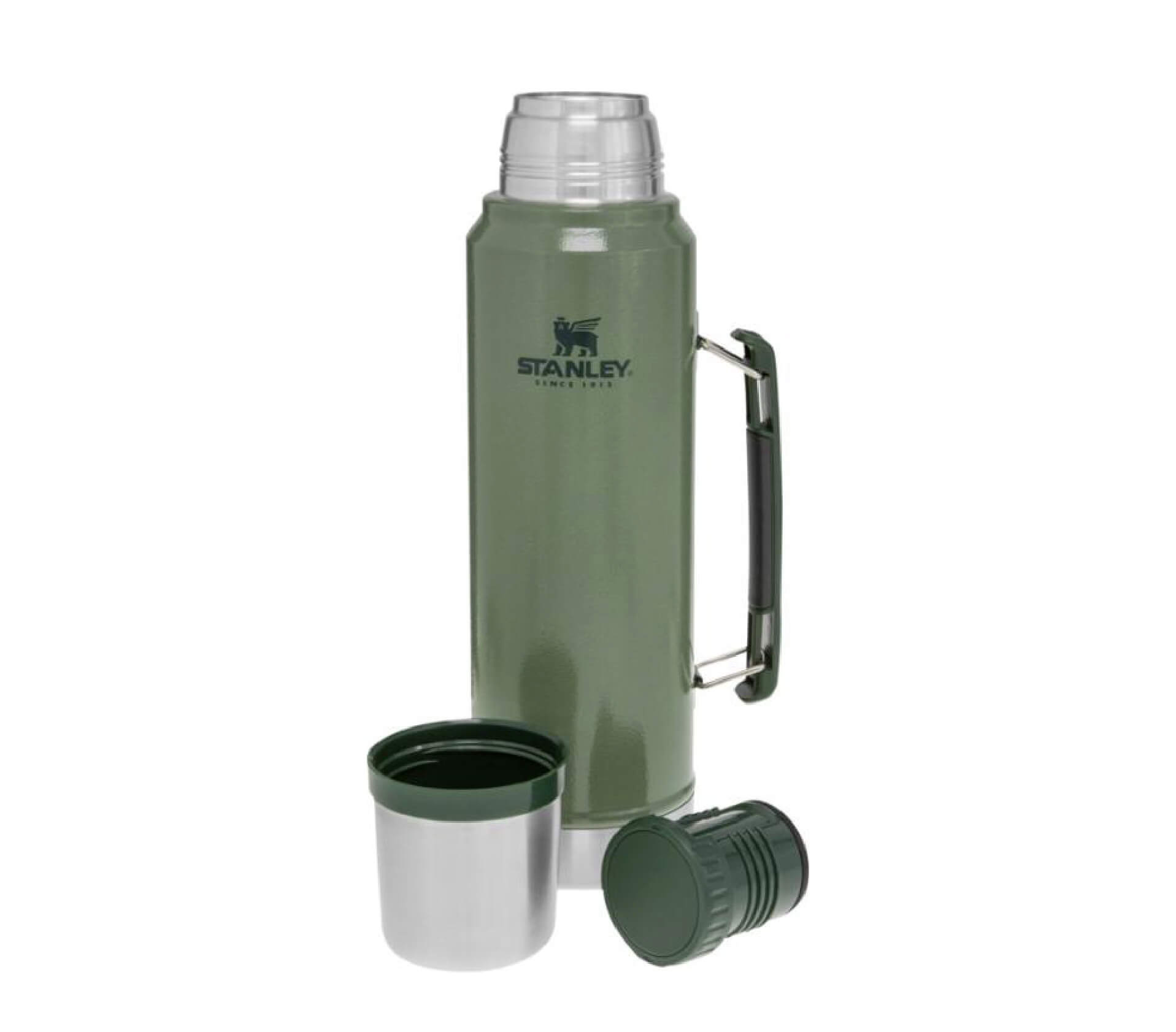 Thermos da 1 litro Stanley, caratterizzato da una struttura robusta e da un isolamento sottovuoto per mantenere le bevande calde o fredde per 24 ore. Dotato di un tappo "svita e versa". Il coperchio termico funge da tazza.