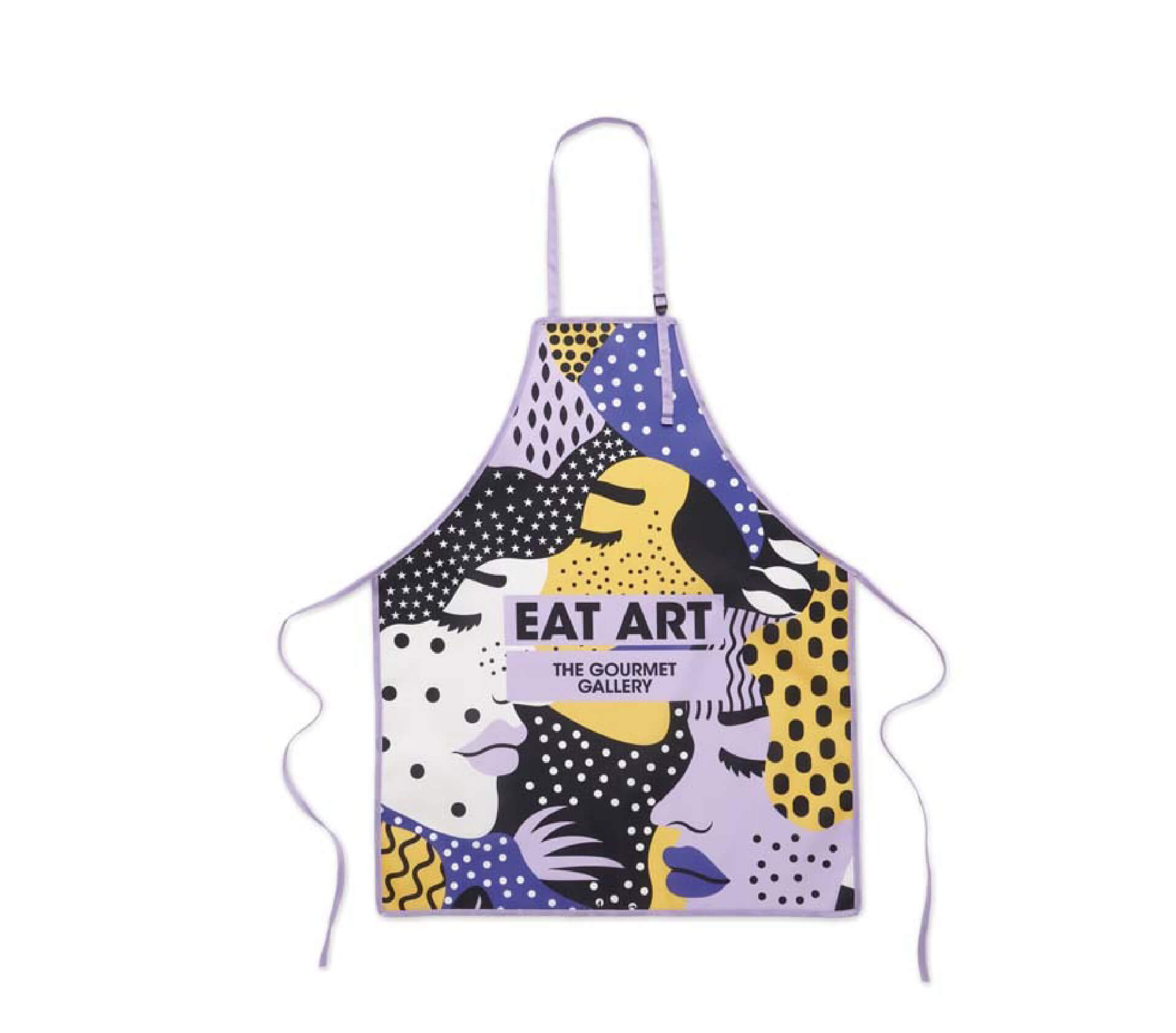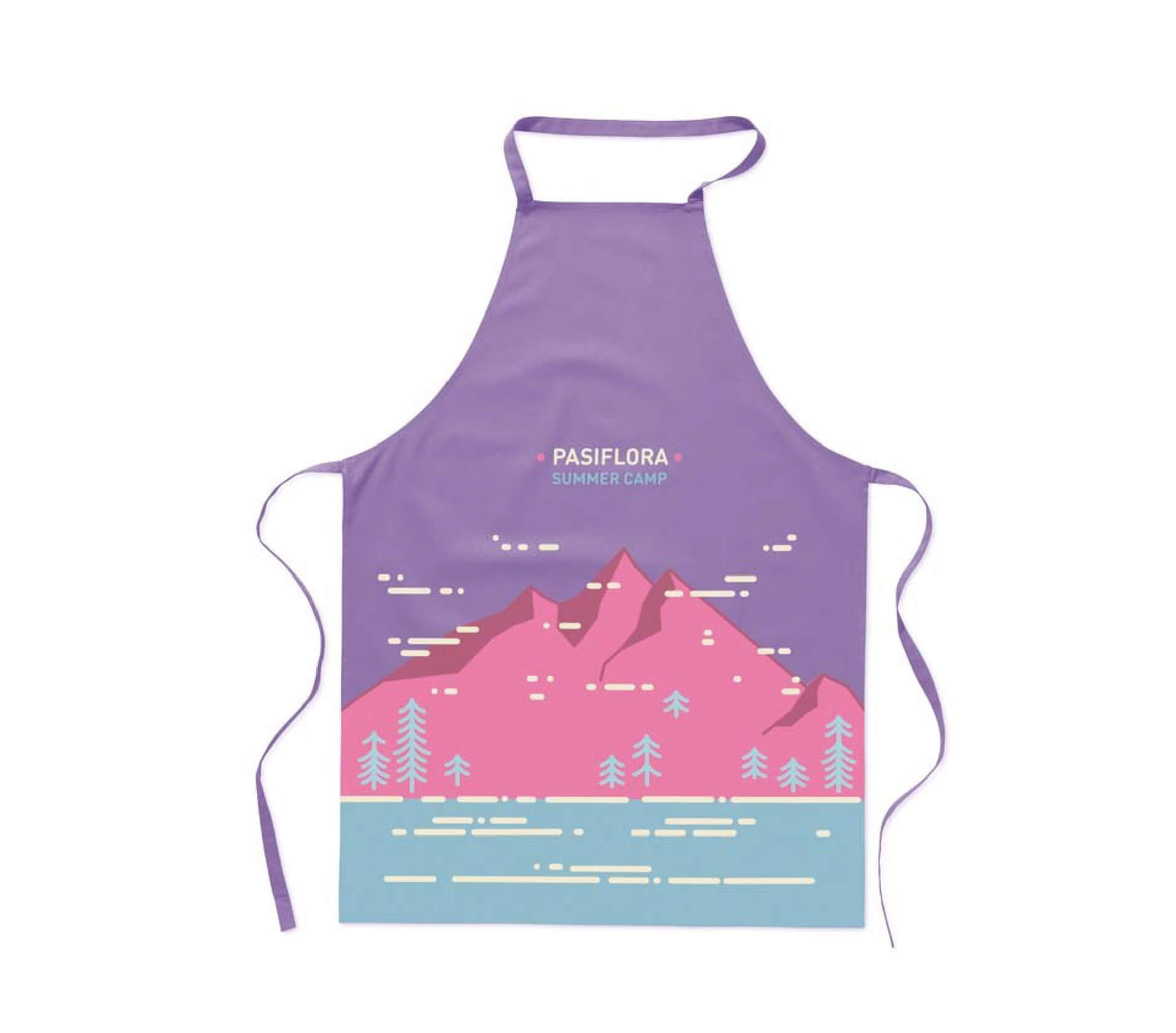 Grembiule con bretelle in cotone bianco da 190 g/m², stampato in digitale allover. L'intera superficie è personalizzabile con immagini a colori per un impatto visivo totale.