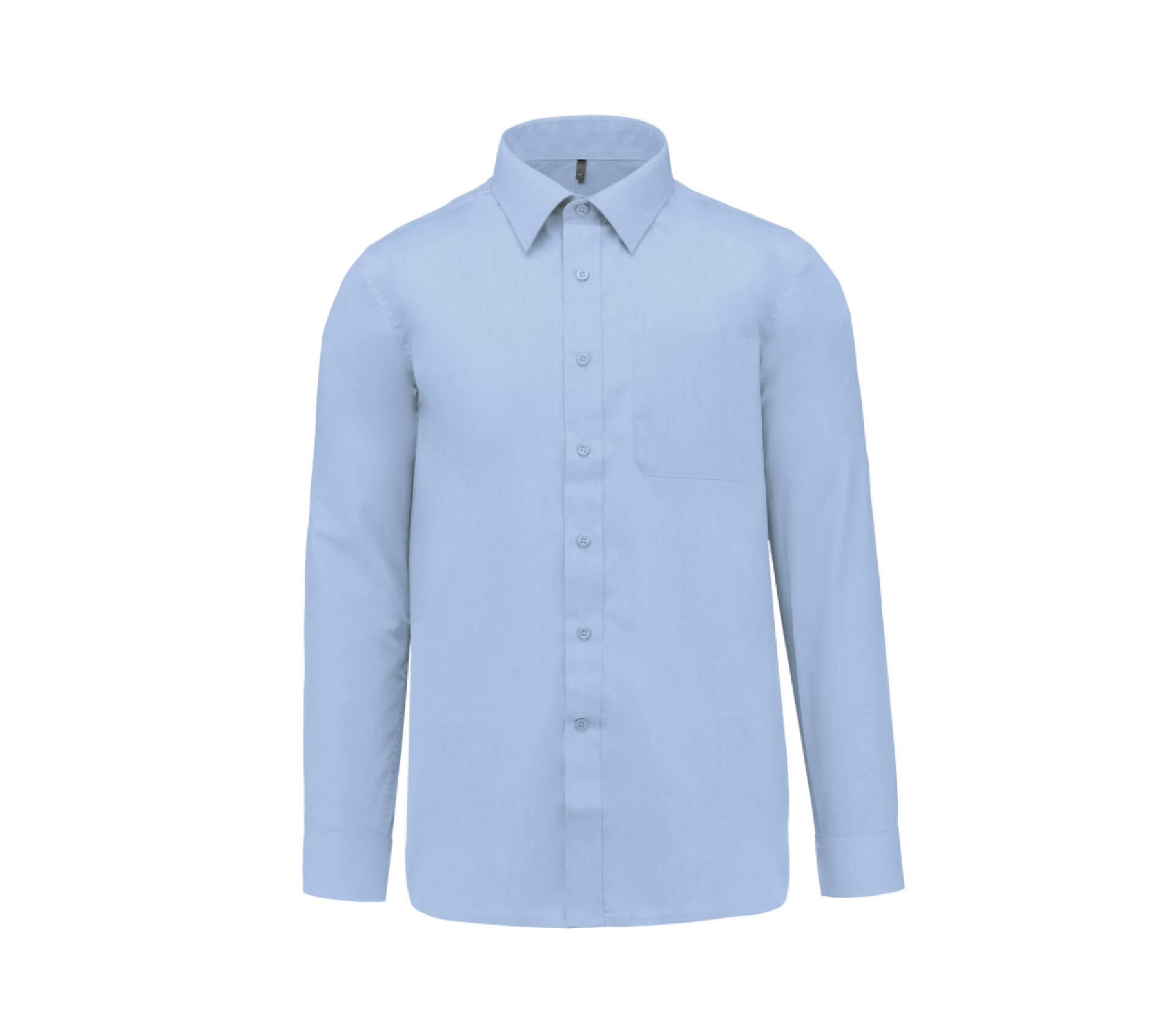 Camicia in popeline 65% poliestere e 35% cotone,facile da stirare. Colletto alla francese bottoni tono su tono, taschino sinistro. Polsini regolabili e 2 bottoni di ricambio. Eleganza e praticità..