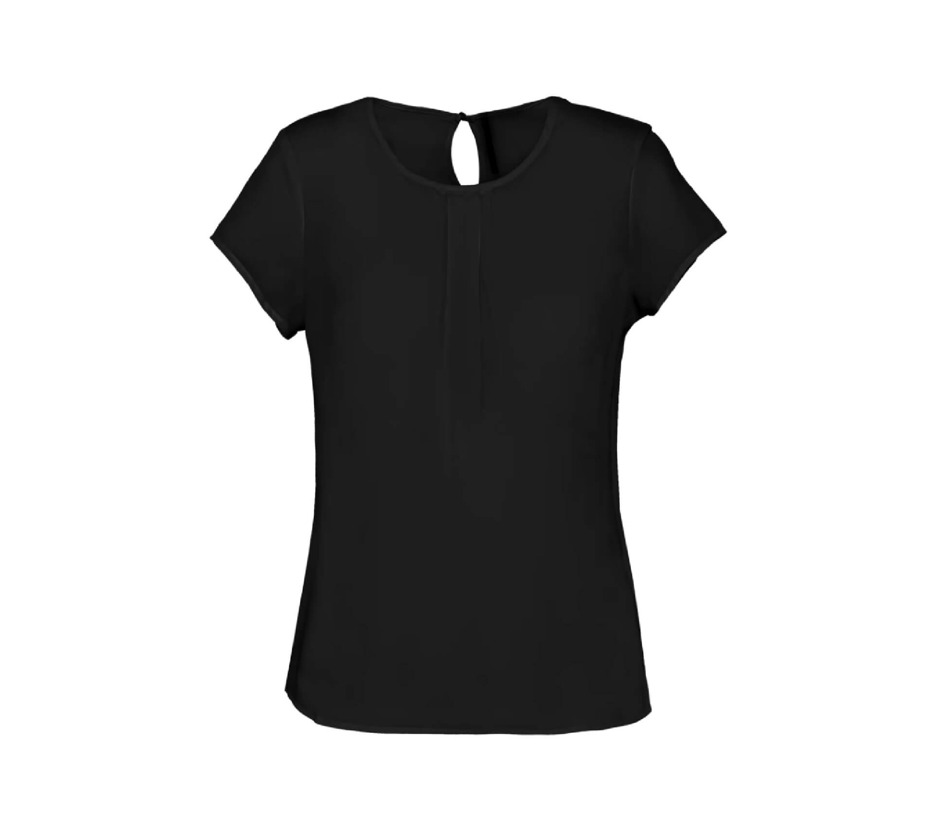Blusa manica corta dal taglio fluido e leggero.Perfetta per un look chic e minimalista, è l'essenziale dell’abbigliamento corporate femminile. Collo tondo con delicate plissettature per eleganza e sobrietà in ogni occasione.