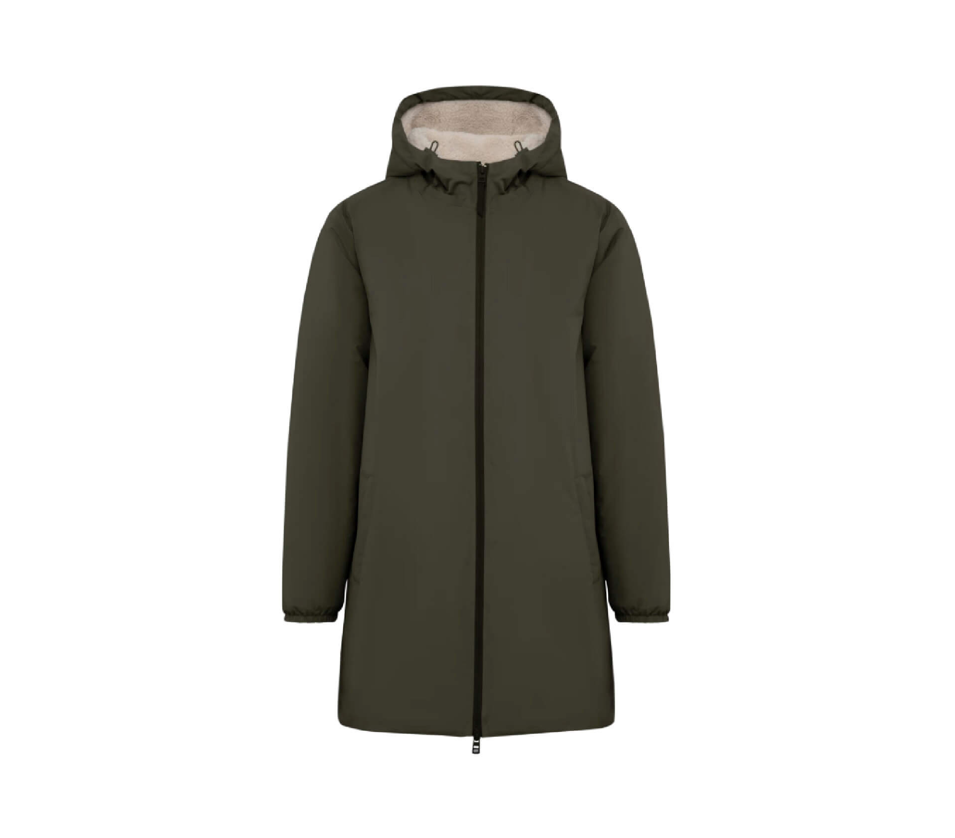 Giacca unisex impermeabile e traspirante in poliestere riciclato, foderata in caldo sherpa. Con cappuccio, zip riciclate e dettagli per la personalizzazione. Comfort, protezione e sostenibilità in un unico capo.