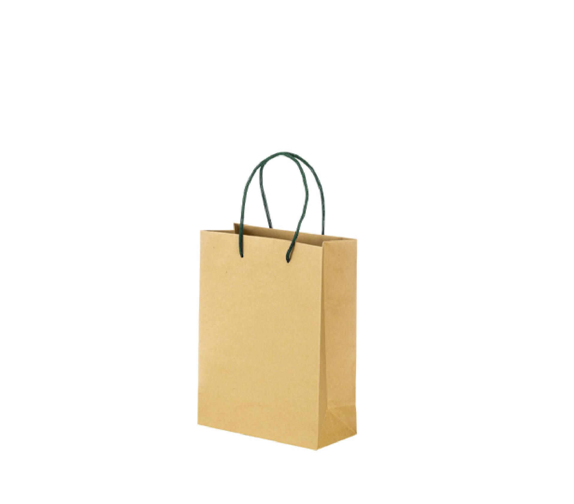 Borsetta in carta naturale riciclata da 150 gr/m².Dotata di soffietto e manici corti colorati in carta intrecciata.