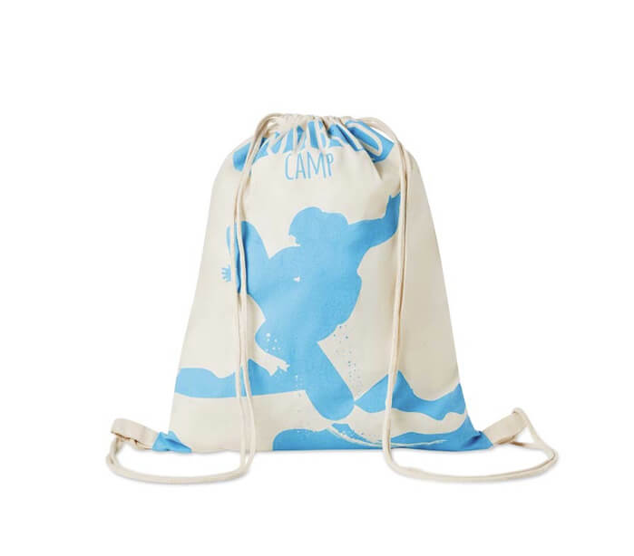 Borsa in cotone con coulisse. Scegli tra le varie grammature disponibili, il colore naturale o a pantone e realizza il tuo progetto su misura con stampa a filo in full color.