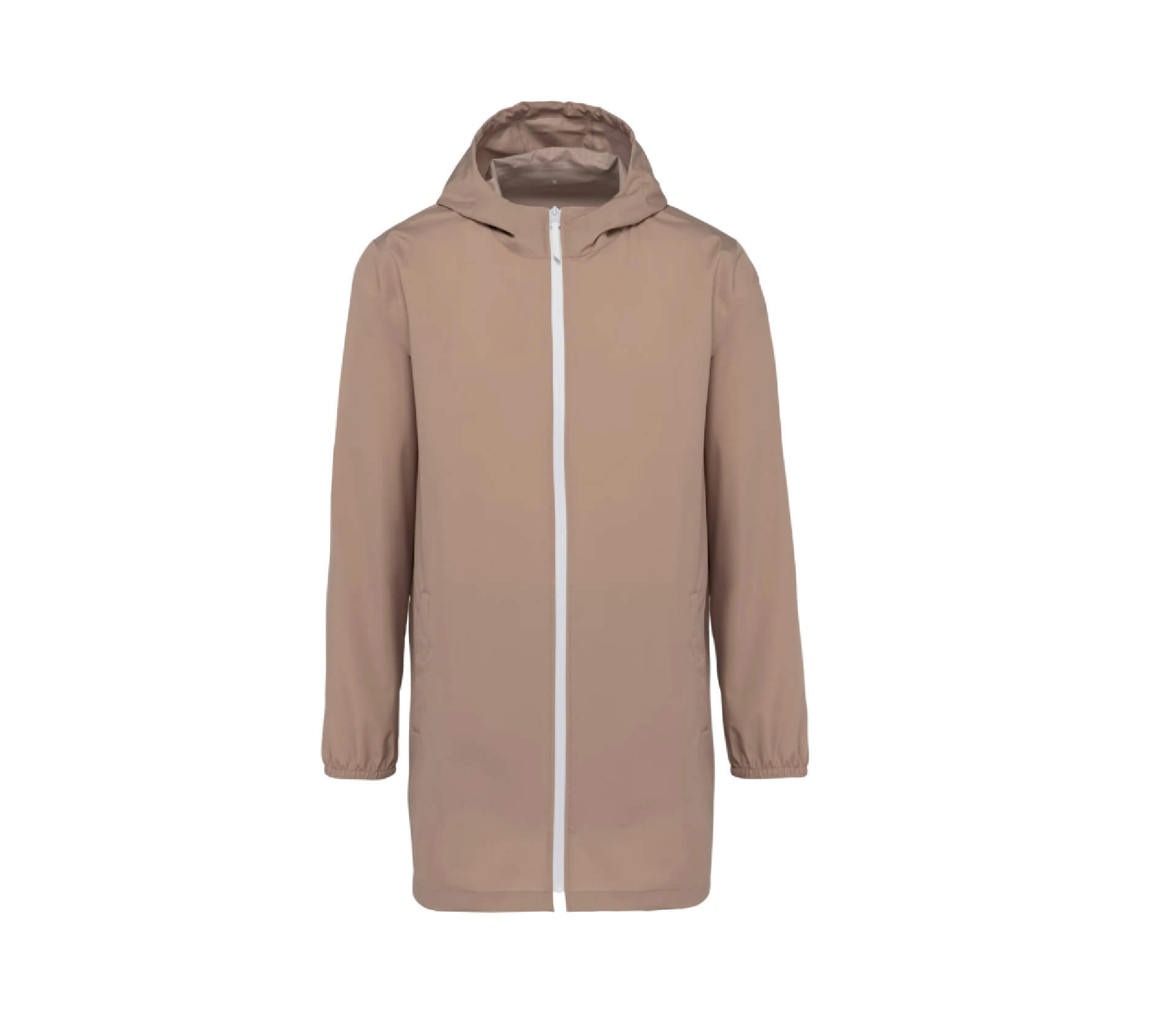 Giacca unisex impermeabile e traspirante in poliestere riciclato. Dotata di cappuccio, zip riciclate e cuciture termosaldate. Design essenziale, 100% personalizzabile per progetti aziendali sostenibili