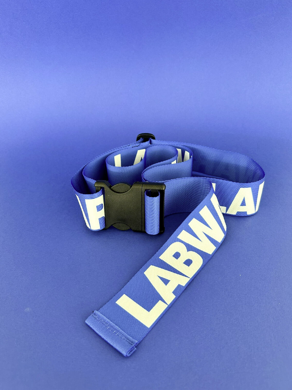 Realizzata con materiali resistenti e MADE IN ITALY, la cintura per valigia assicura praticità e sicurezza. Regolabile per adattarsi a qualsiasi bagaglio, è personalizzata con il logo Labware, rendendo immediata l’identificazione e aggiungendo un tocco di stile.
