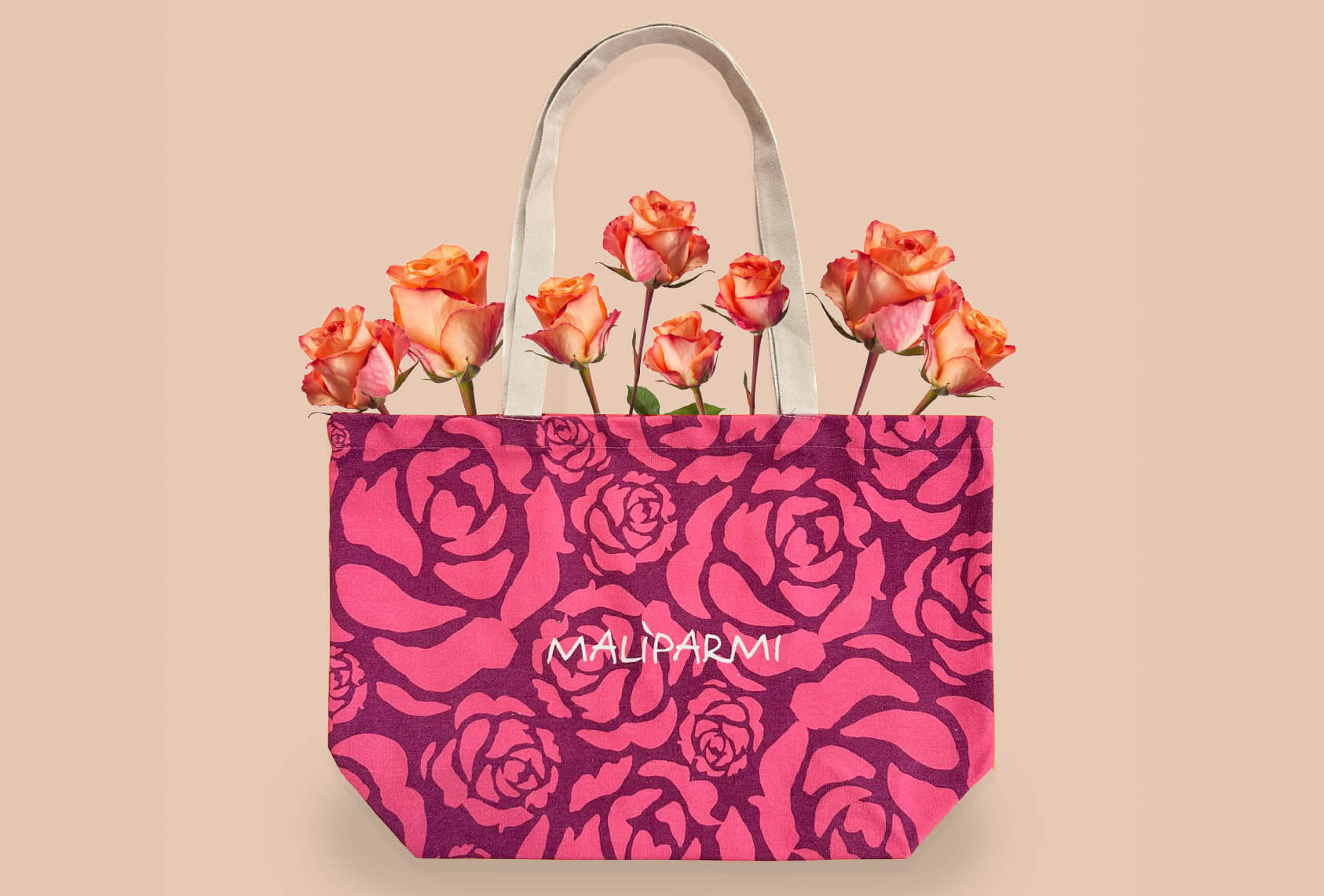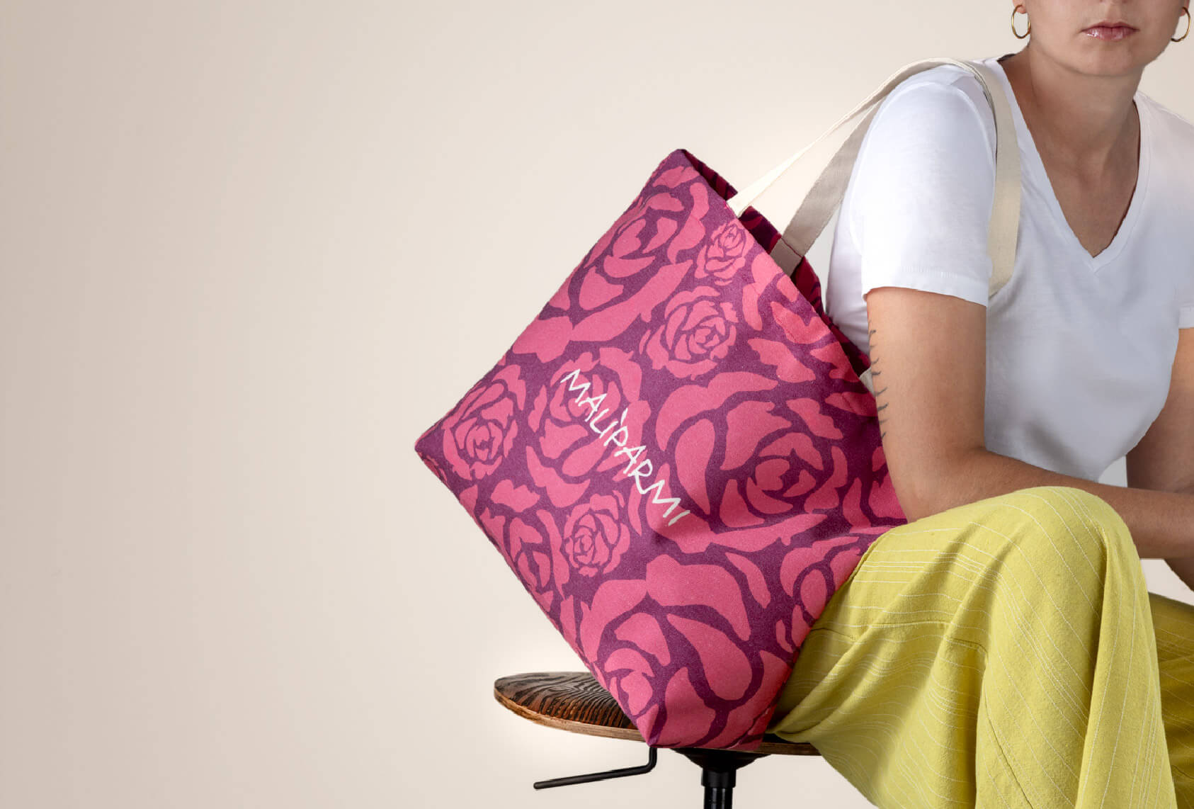 La richiesta di Malìparmi era quella di sviluppare una borsa shopper che fosse capiente e resistente, senza compromettere l’estetica. La personalizzazione doveva esprimere il DNA del brand, con una riproduzione fedele del pattern delle loro iconiche rose e un uso ottimale della stampa full color.