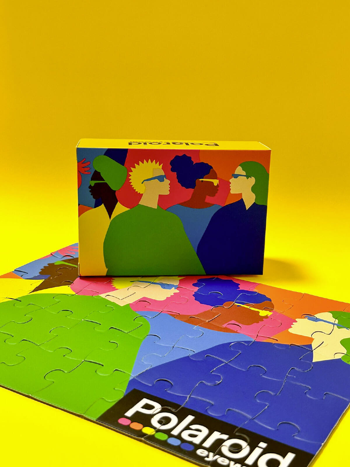 Per Polaroid abbiamo curato un progetto completo, interamente sviluppato da noi, dall’ideazione grafica fino alla produzione finale. Abbiamo realizzato carte da gioco e puzzle completamente personalizzati, progettando ogni elemento visivo internamente, in coerenza con lo stile iconico del brand.