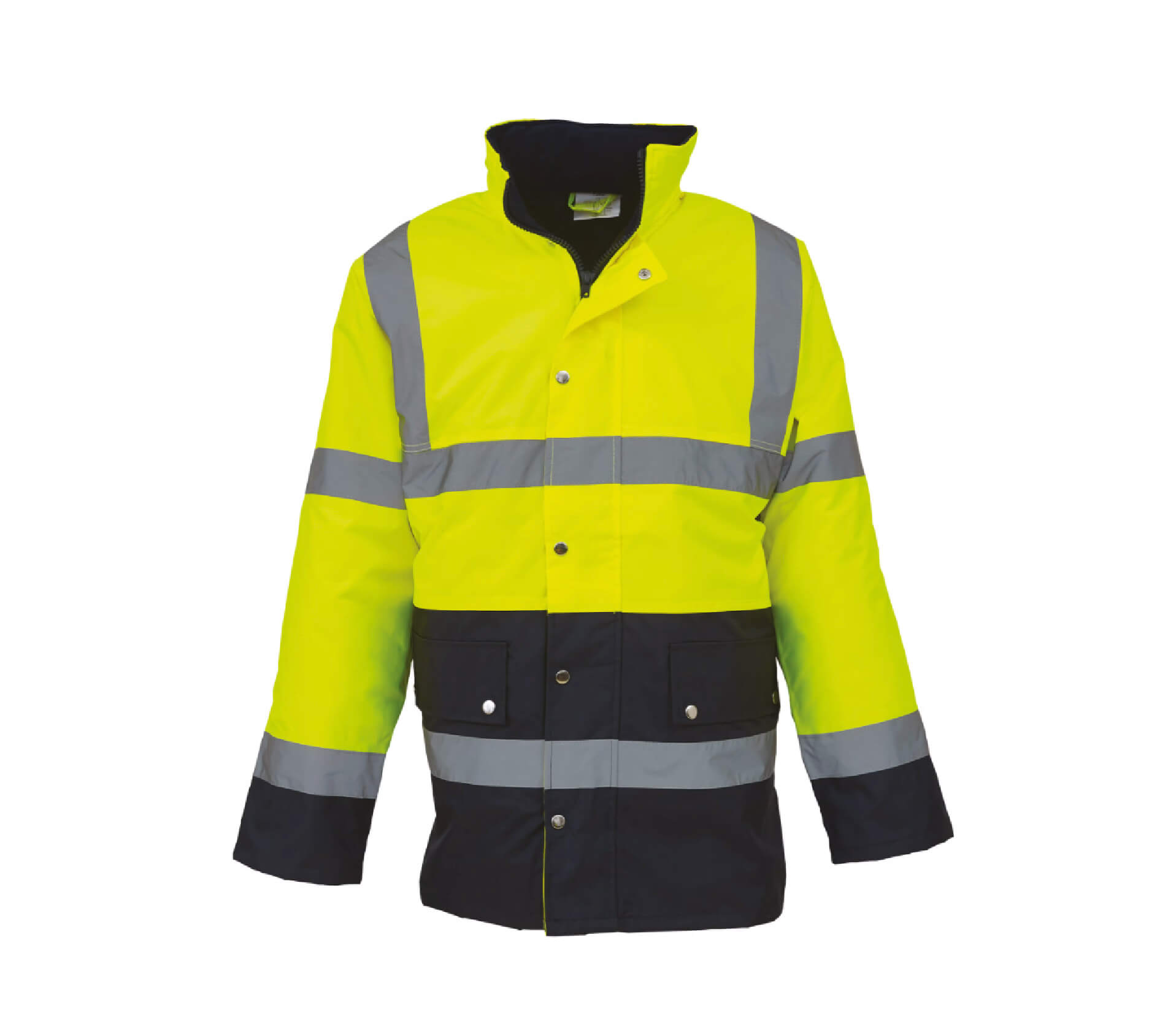 Ombrello classico automatico stecca e raggi in metallo, punte e manico curvo in plastica, doppio rivestimento a due colori, poliestere, laccio di chiusura a strappo.