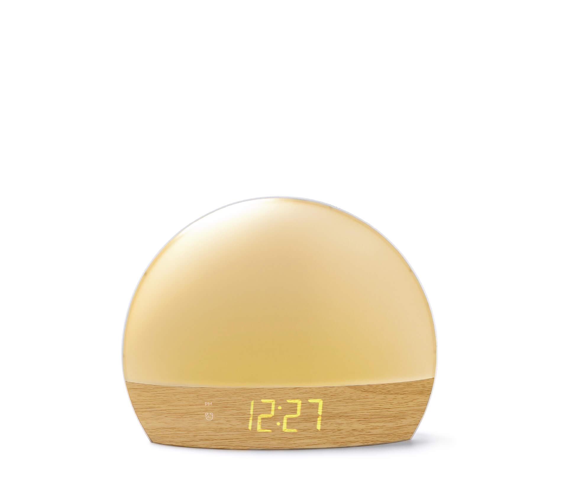 Sveglia in ABS riciclato con LED a intensità regolabile, multicolore. Mostra ora, data e temperatura. Con cavo e packaging ecologico.