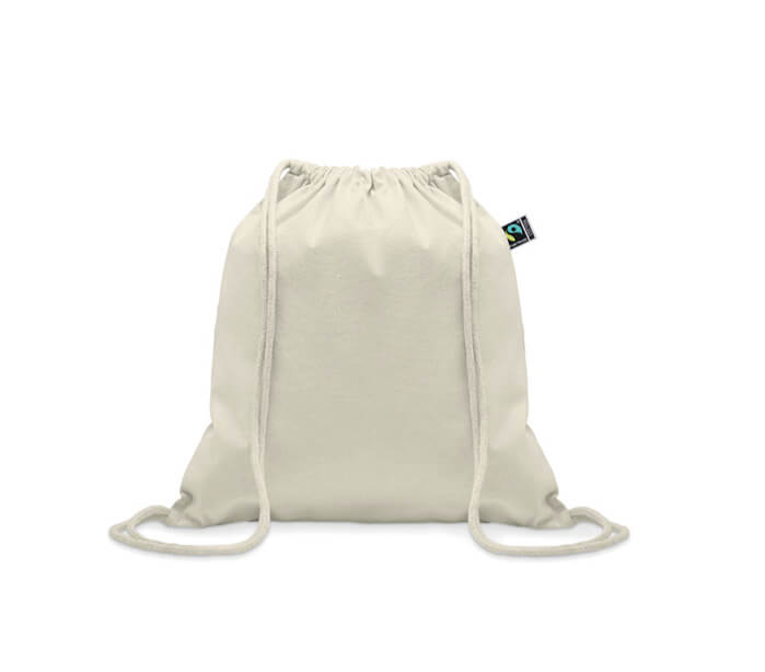 Sacca in cotone equosolidale da 180 gr/m². Realizza un gadget con certificazione di sostenibilità Fairtrade per campagne promozionali consapevoli.