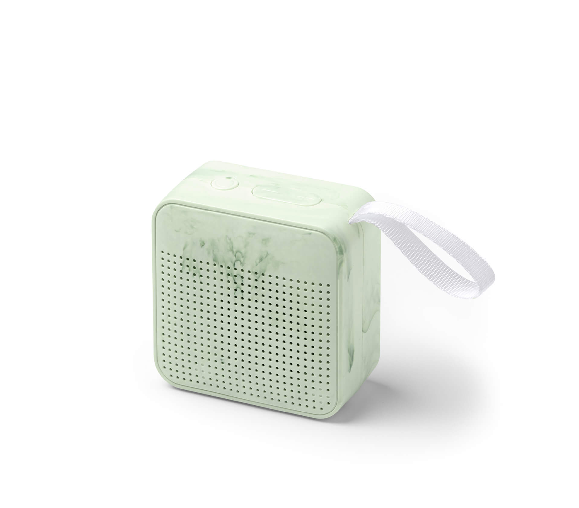 Cassa wireless da 3W realizzata con tappi di bottiglia riciclati. Dotata di maniglia in poliestere RPET e cavo Type-C incluso. Confezionata in scatola dal design ecologico.