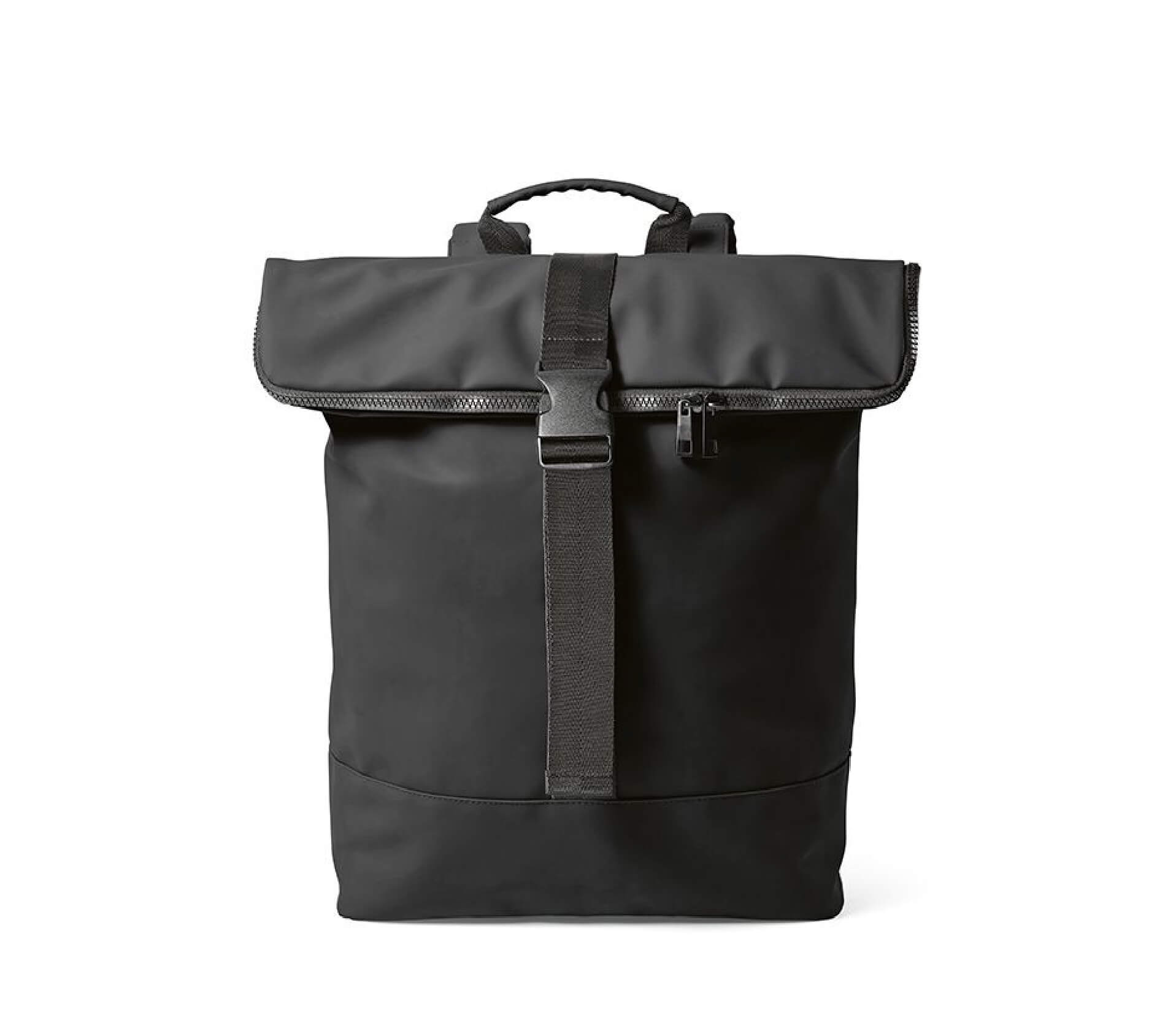 Questo zaino roll-top da 24L con chiusura a zip e fibbia unisce PU riciclato e funzionalità. Dispone di una tasca principale con uno scomparto imbottito per laptop fino a 17".